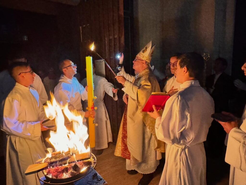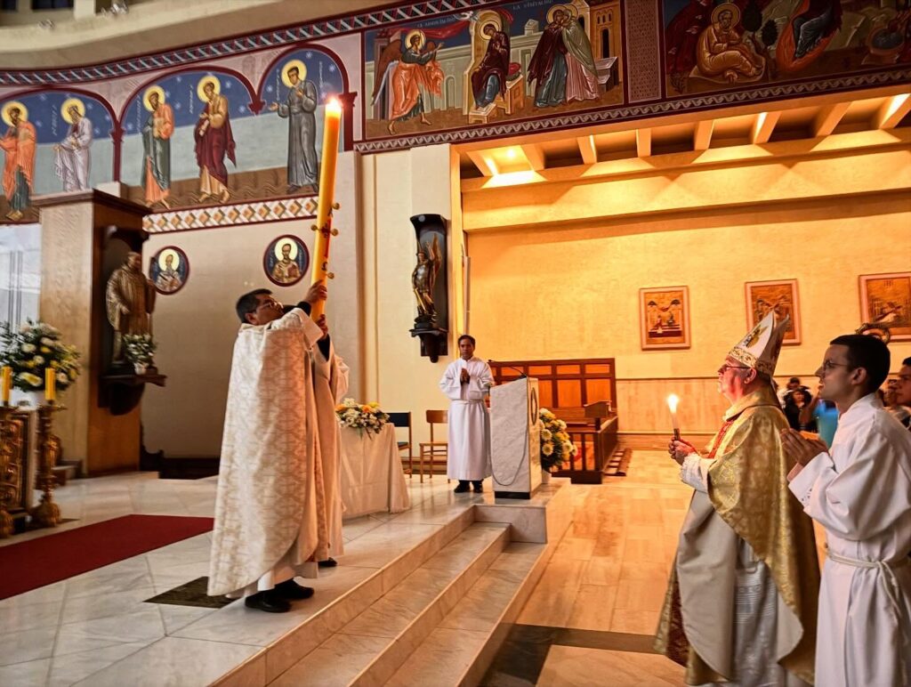 Monseñor Juan Ignacio González presidió la solemne Vigilia Pascual en la Iglesia Catedral de San Bernardo, que congregó a numerosos fieles que celebraron la Resurrección de nuestro Señor Jesucristo.